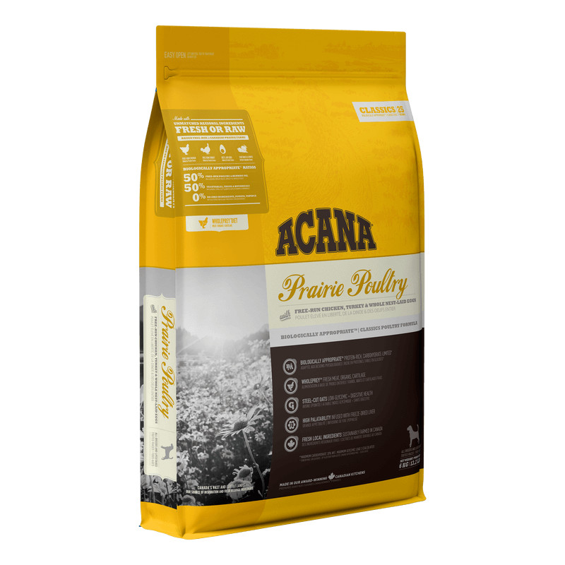 Kiekvienas ACANA receptas nuo pradžios iki pabaigos apgalvotai sukurtas naudojant aukščiausios kokybės ingredientus. Mūsų ACANA Classics Prairie Poultry receptas yra puikiai subalansuotas. Sudėtyje yra 50 % kokybiškų gyvūninių ingredientų, tokių kaip vištiena. Gyvūniniai ingredientai subalansuoti su naudingais grūdais, daržovėmis ir vaisiais, šie ingredientai sudaro apie 50 %. Recepte taip pat yra daug maistinių medžiagų, kurios padeda palaikyti gerą virškinimą, stiprų imunitetą ir sveiką odą bei kailį. Maitinkite savo šunį aukščiausios kokybės maistu.