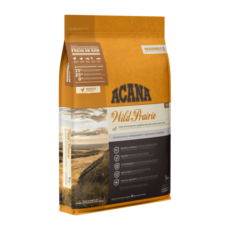 Mūsų ACANA Highest Protein Wild Prairie receptas, turintis didžiausią gyvūninių baltymų kiekį, visiškai patenkins jūsų katę savo gausiais paukštienos ingredientais ir skoniu. Šis receptas, sudarytas iš 75 % gyvūninių ingredientų, įskaitant laisvai augintų vištų ir kalakutų mėsą bei vištų kepenėles, suteiks jūsų katei įvairių maistingų gyvūninių baltymų. Šis receptas taip pat padeda palaikyti svarbiausius sveikatos aspektus, įskaitant jūsų katės virškinimo sistemą, sveiką odą ir kailį, sveiką širdį ir akis. Pamaitinkite savo katę turtingais gyvūniniais baltymais ir maistingomis medžiagomis, esančiomis ACANA Highest Protein Wild Prairie Recipe!