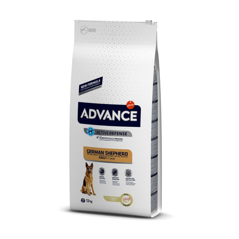 ADVANCE GERMAN SHEPHERD pašaras specialiai sukurtas suaugusiems vokiečių aviganių veislės šunims.