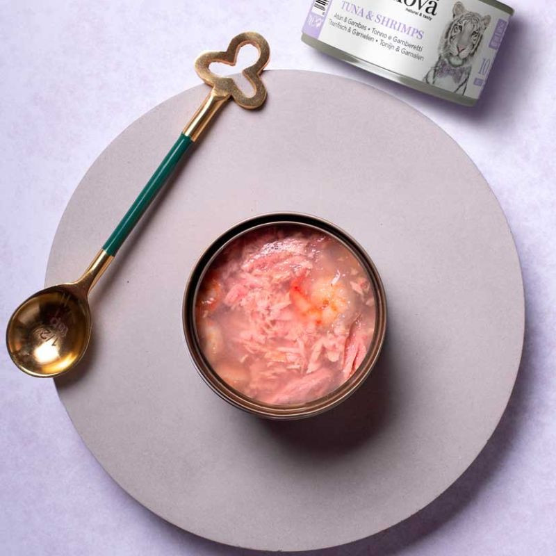 100 % natūralus receptas be grūdų, idealus katėms, mėgstančioms žuvį, pagamintas iš aukštos kokybės skipjako tuno ir gardžių krevečių, toks pat skanus ir maistingas, lyg būtų paruoštas specialiai jums.