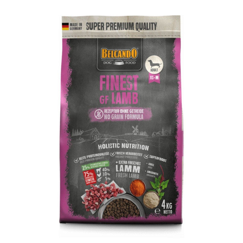 Belcando® Finest GF Lamb - visavertis, begrūdis sausas maistas su ėriena suaugusiems mažų ir vidutinių veislių šunims. Grūdai buvo pakeisti aukštos kokybės amarantu. Net 40% šviežios mėsos.