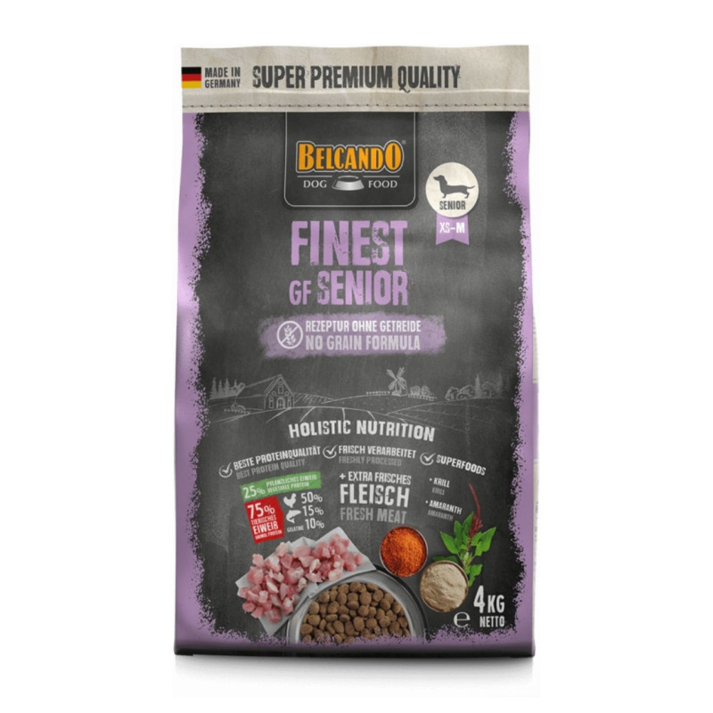 Belcando® Finest GF Senior - pilnavertis, begrūdis maistas mažų ir vidutinių veislių vyresnio amžiaus šunims. Amarantas, maistingi kriliai ir šviežia paukštiena, keturkojams draugams suteikia viską, ko jiems reikia vyresniame amžiuje.