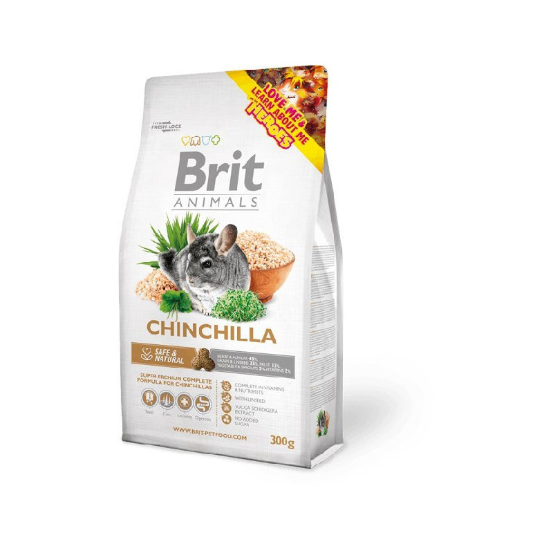 Saugus pašaras Brit Animals šinšiloms papildytas vitaminais ir maistingomis medžiagomis. Be cukraus. Sudėtyje yra sėmenų ir šeriuotųjų jukų.