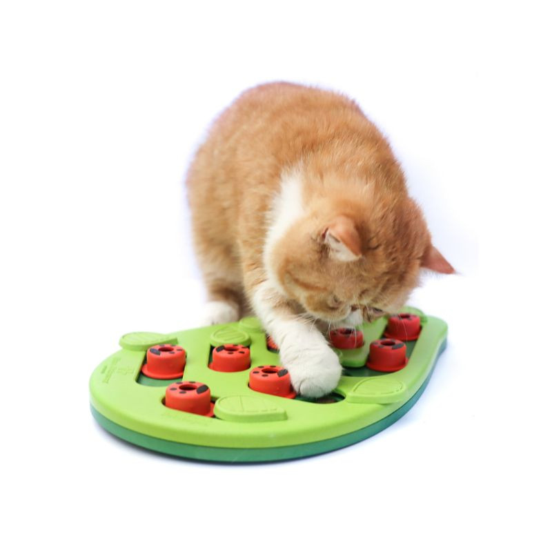 Catstages Buggin' Out Puzzle žaislas katėms turi 16 skyrelių, kuriuose galite paslėpti skanėstus katėms. Dėlionės sudėtingumą galite reguliuoti, kad pradedantiesiems būtų lengviau, o itin protingoms katėms – sudėtingiau. Katę maitinti galite ir iš dėlionės, kad pažadintumėte jos medžioklės ir maisto paieškos instinktus; dėlionėje telpa iki 1/4 puodelio maisto.
