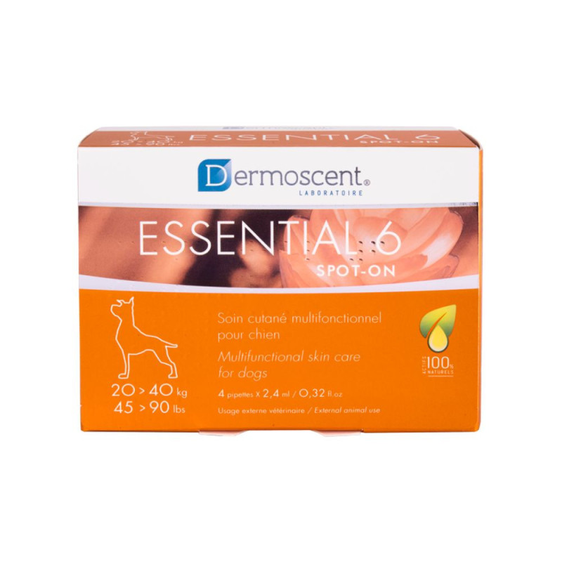 Naudojimo būdas ir dozės: 1 pipetė kartą per savaitę. Masažuoti nereikia, pakanka biodifuzijos. Dermoscent automatiškai pasiskirsto po visą gyvūno kūną. Negalima gyvūno maudyti 2 dienas prieš ir 2 dienas po Dermoscent naudojimo.