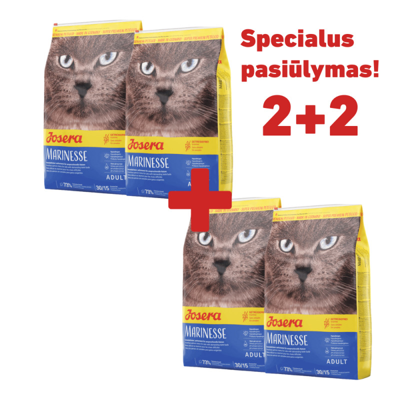 „JOSERA Marinesse“ sudėtyje yra daug skanios lašišos, todėl tai optimalus pašaras katėms, kurios mėgsta žuvį. Šis pašaras taip pat idealiai tinka katėms, kurios netoleruoja maisto. Unikalią formulę sudaro tik gerai toleruojami baltymai, joje nėra grūdų, todėl idealiai tinka jautrioms katėms.