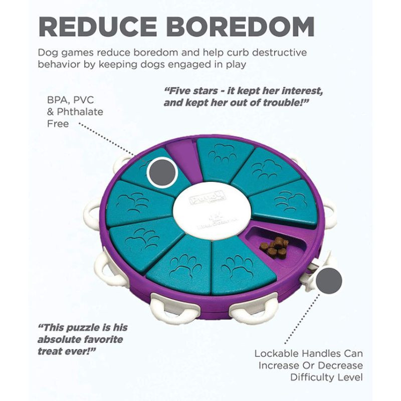 Jei ieškote žaislo nuobodžiaujantiems šunims, kurie jau įvaldė paprastesnius šunų skanėstų galvosūkius, ši įtraukianti 3 lygio pažangi interaktyvi skanėstų dėlionė iš Nina Ottosson yra puikus kitas žingsnis!