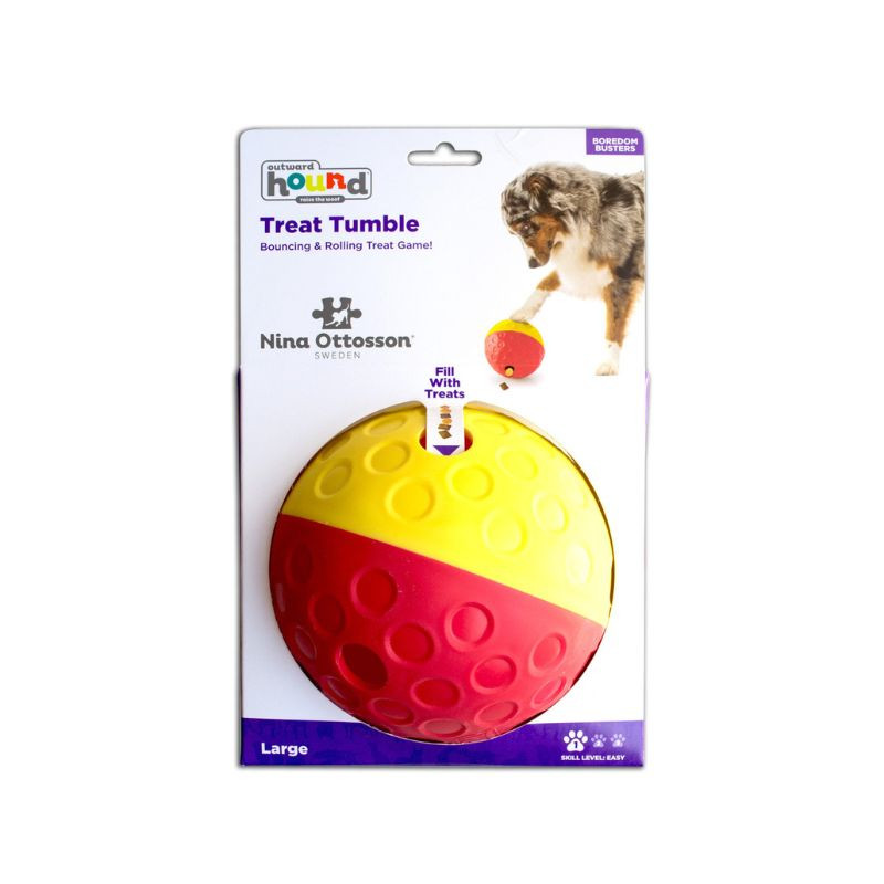 Nina Ottoson Treat Tumble kamuoliuką skanėstams yra lengva pripildyti skanėstais, kadangi produkte yra dvi skylutės, skirtos skanėstams. Žaislas yra pagamintas iš maistui saugaus plastiko be BPA, kurį lengva nuvalyti, kad būtų patogu žaisti tiek lauke, tiek viduje!