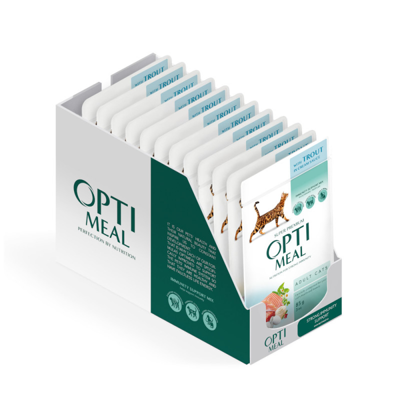 Švelnūs upėtakio gabaliukai pripildo augintinio organizmą lengvai virškinamų baltymų, kurie neapkrauna virškinimo sistemos. Maisto formulė leidžia lengvai išlaikyti tinkamą katės svorį ir apsaugoti ją nuo nutukimo. Taip pat į kompoziciją pridedama prebiotikų, kurie normalizuoja žarnyno mikroflorą ir koreguoja visus virškinimo procesus, todėl kasdienė mityba tampa patogi ir lengva.