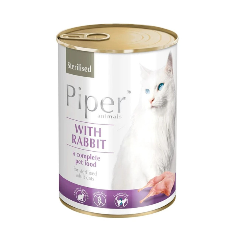 Dėl naudojamo gamybos metodo ir kruopštaus ingredientų parinkimo, Piper konservai su triušiena sterilizuotoms katėms yra lengvai virškinami, tenkinantys 100% dienos mitybos poreikius ir puikiai atitinkantys visų veislių sterilizuotų kačių mitybos poreikius.