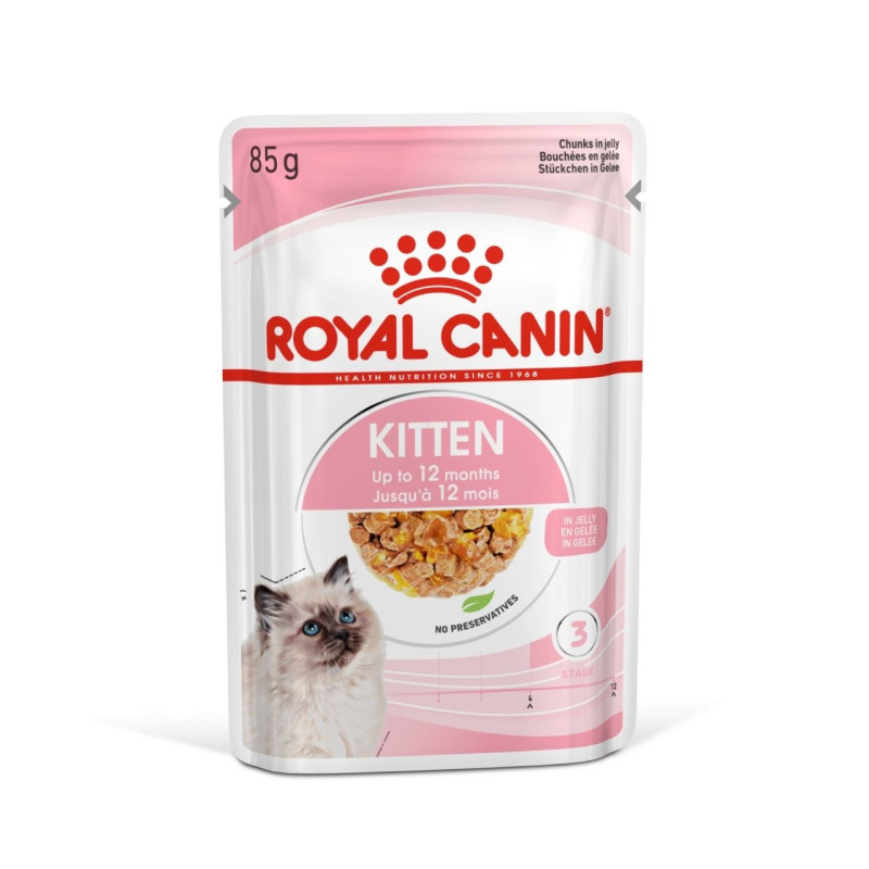 Royal Canin Kitten Instinctive in Jelly – subalansuotas visavertis konservuotas ėdalas drebučiuose, skirtas vyresniems kačiukams – nuo 4 iki 12 mėn. amžiaus. Gabalėlių dydis ir konsistencija yra puikiai pritaikyti kačiukų žandikauliams.