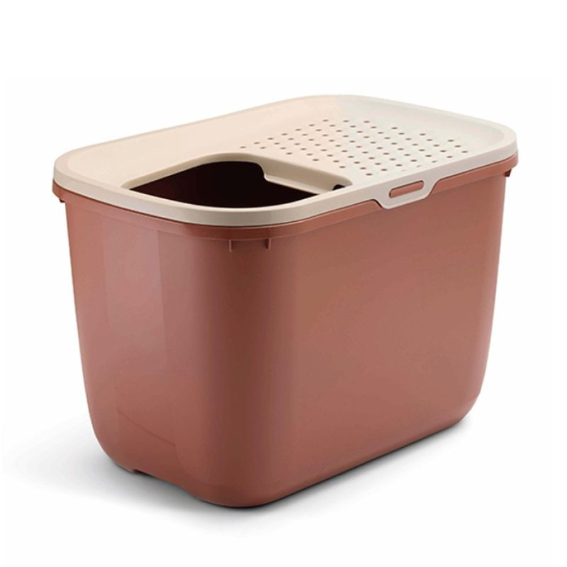 Hop In viršutinio įėjimo kraiko dėžė – praktiškas ir stilingas sprendimas kačių savininkams, norintiems sumažinti kraiko išbarstymą ir sekimą po namus. Paaukštintos kraštinės užtikrina, kad kraikas, šlapimas ir nešvarumai liktų dėžėje, todėl ji idealiai tinka katėms, kurios šlapinasi stovėdamos, šlapinasi atbulomis arba mėgsta išbarstyti kraiką.