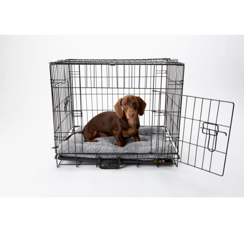 Pilkas guolis (dėžės kilimėlis) užpildytas perdirbtu PET pluoštu, kuris užtikrina gerą amortizaciją, elastingumą ir šilumos izoliaciją – puikiai tinka katėms, mėgstančioms šilumą.
