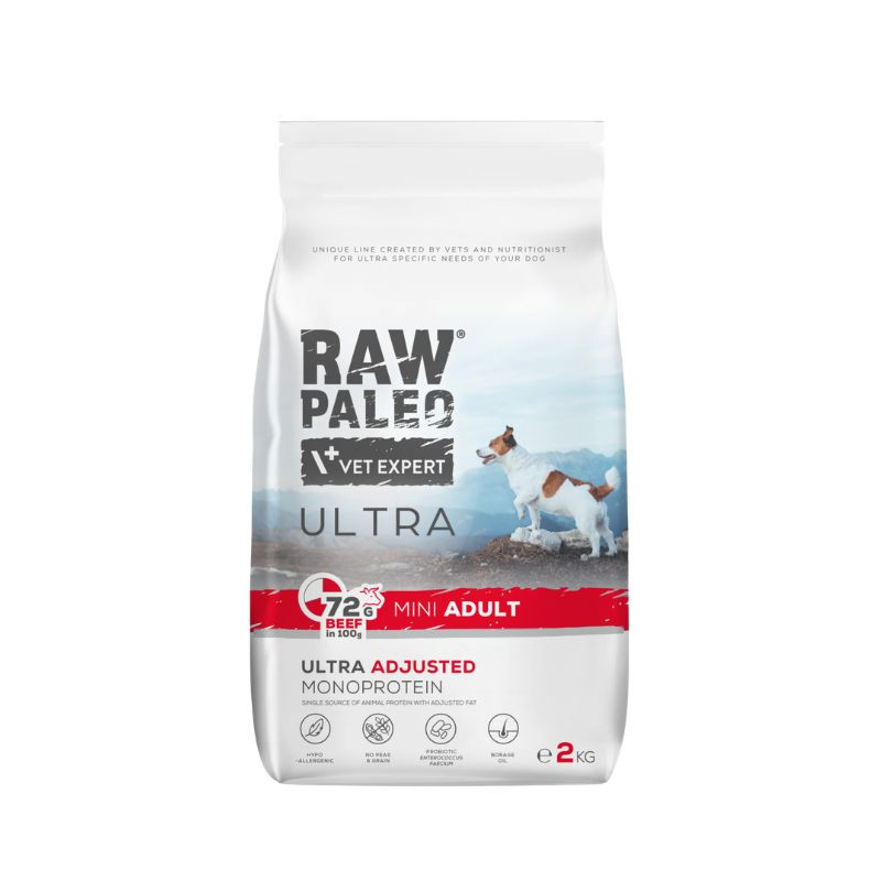 VetExpert Raw Paleo Ultra Adult Mini sausas pašaras su jautiena mažų veislių šunims